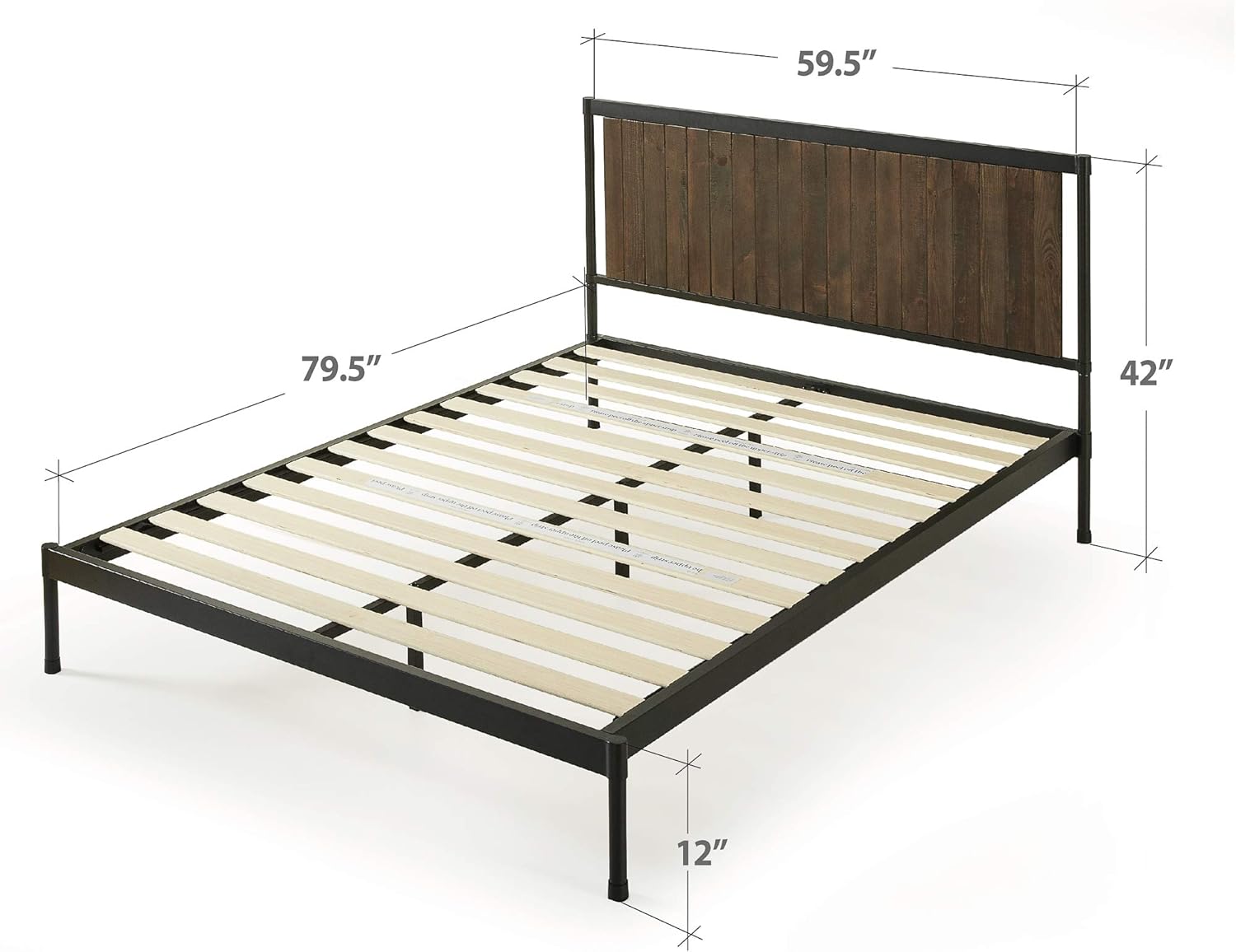 The ZINUS Wesley Platform Bed Frame provides a sturdy foundation for your mattress without the need for a box spring. It features a steel frame with a paneled wood headboard, offering a blend of modern and rustic aesthetics. The design incorporates durable wood slats for mattress support and includes under-bed clearance for storage.
