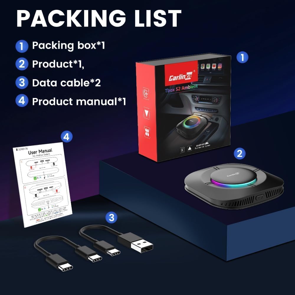 Upon unboxing your Carlinkit CPC200-Tbox S2C, you should find the following items: