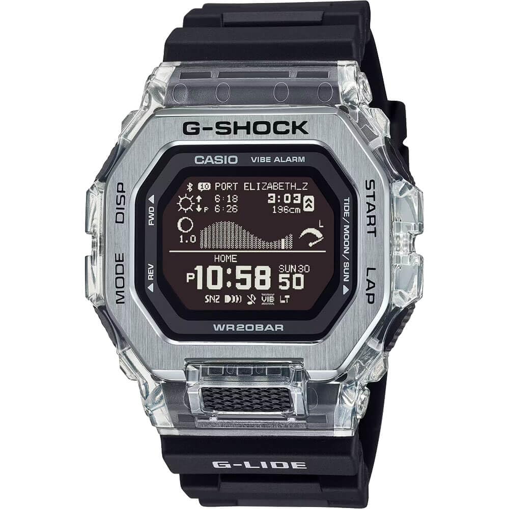 The Casio G-Shock G-LIDE GBX-100 Series is a robust digital watch designed for active lifestyles, particularly surfing and outdoor activities. It combines G-SHOCK's renowned toughness with advanced digital functionality, featuring a high-definition MIP LCD for clear visibility and smartphone connectivity for enhanced data management.